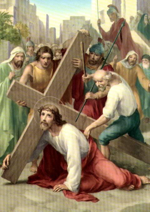 “Mentre lo conducevano via, presero un certo Simone di Cirene che veniva dalla campagna e gli misero addosso la croce da portare dietro a Gesù.”